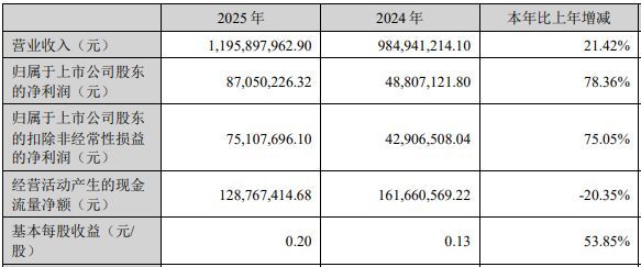 运达科技(300440.SZ,股价16.30元,市值71.64亿元)4月15日晚间败露2025年年报,公司2025年结束营收约11.96亿元,同比增长21.42%;结束归母净利润约8705.02万元,同比增长78.36%;结束扣非净利润约7510.77万元,同比增长75.05%。公司拟以约4.334亿股为基数,每10股派发现款红利0.47元(含税),不送股,不转增。