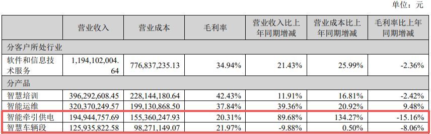 同期,尽管“智能牵引供电”业务营收同比增长89.68%至1.95亿元,但该板块毛利率同比减少15.16个百分点至20.31%。此外,运达科技“灵敏车辆段”业务期内营收同比下滑9.88%,毛利率亦同步着落8.06个百分点。受此牵累,公司2025年主营的“软件和信息本领劳动”全体毛利率下滑2.36个百分点。