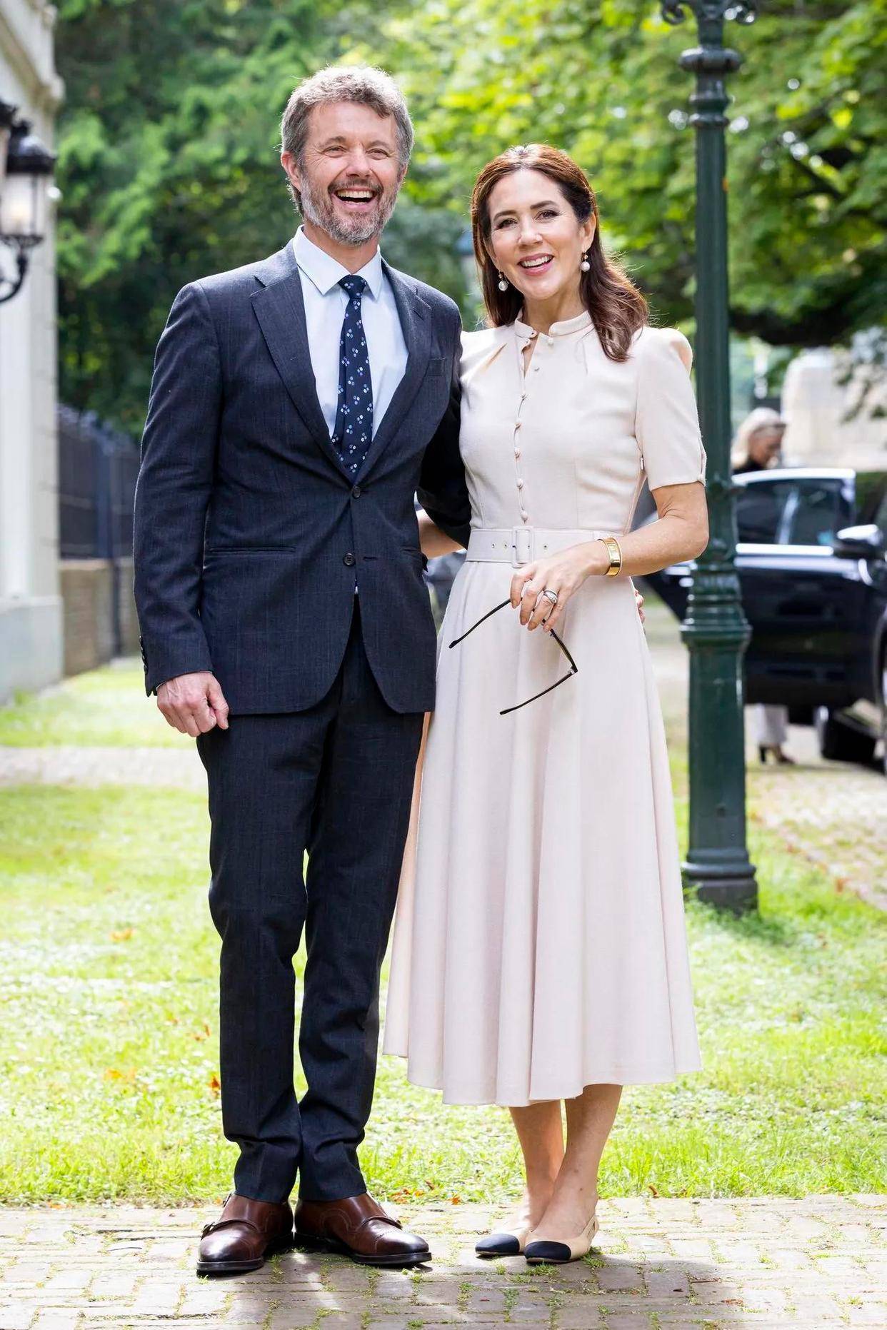 这也曾不是两东谈主第一次正面交锋。旧年王室晚宴上,玛丽穿红色丝质连衣裙配飘带腰封,布丽吉特就用同色系红大衣+红裙的组合应战;本年春天的环保论坛,玛丽以白色真诚衫配红裙走蔼然道线,布丽吉特径直上玄色V领西装裙,用干练感对冲。有有趣的是,每次看似玛丽靠王室身份占优,但布丽吉特总能用"反套路"穿搭出圈——比如那条让她封神的竖条纹黑裙,那时就有前锋博主分析:"V领拉长颈部线条,及膝长度闪现最细的脚踝,67岁能把职场装穿成红毯战袍,也就她敢这样玩。"