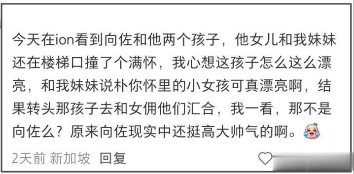 向太一家现身新加坡,向佐一家三口逛街被偶遇