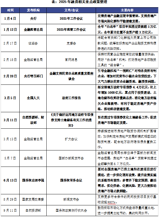 2025年,房地产计策仍保执宽松基调,在3月的两会政府职责阐述中,指出实施截至宽松的货币计策,并提到“应时降准降息”,以及“实施愈加积极的财政计策”。从全年的房地产融资计策来看,一方面通过房企白名单计策,买通保委用和保险房的贷款资金轮回,2025年10月11日,住房和城乡建树部副部长董开国在新闻发布会上示意,世界白名单神色贷款审批金额已冲突7万亿元。另一方面在存量地盘方面饱读吹通过收储周转闲置地盘,而在贸易地产边界则推动公募REITs来开释更多千里淀资金。