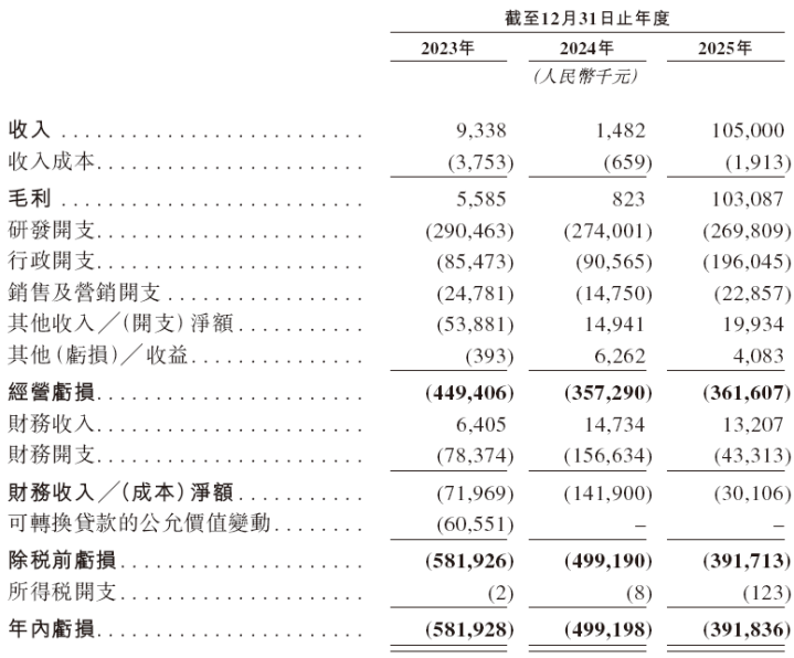 招股书涌现,在已往的2023年、2024年和2025年,剂泰科技的营业收入分裂为东谈主民币933.8万、148.2万和10,500.0万元,相应的净去世分裂为东谈主民币5.82亿、4.99亿和3.92亿元,相应的净去世分裂为东谈主民币3.47亿、2.40亿和1.80亿元。