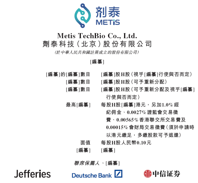 2026年3月25日,来自北京大兴区的剂泰科技(北京)股份有限公司MetisTechBioCo.,Ltd.(以下简称“剂泰科技”)在港交所知道聆讯后的招股书,获很快在港交所主板上市。其此前于2026年2月12日以守密样子递交招股书、2026年3月25日公开知道。